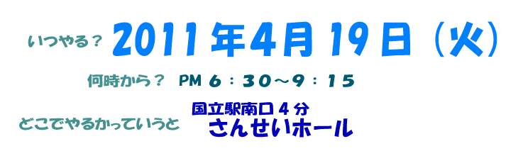 | 会費:1000円 (コヒー、紅茶、麦茶、緑茶は用意してあります、自由にお飲みください。 お茶菓子付き) |